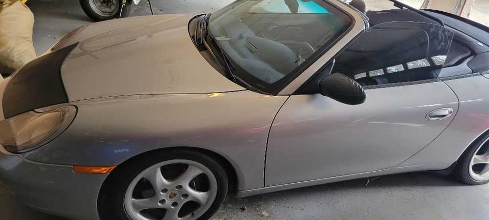 2000 Porsche 911 Carrera Cabriolet finished with an Arctic Silver Metallic exterior and grey leather interior. Driven just 34,800 miles since new. Options on this 911 Carrera include Automatic 5 speed Tiptronic, with paddle shifters, 18 Inch Light Alloy Wheels, Porsche Crests, Comfort Seats, 3 Spoke Steering Wheel, Hi-Fi Sound Package, Soft Leather Seats, New top and much more. The steering is tight and precise and the brakes feel just great. All of the electronics work properly and the air conditioning is cold. This really is a fantastic Porsche to drive. The interior is really nice. The leather seats are in remarkable condition (see pictures) showing just minimal wear to the seats. The dashboard is like new and even the carpets don’t look or feel like they have been stepped on thanks to the Porsche floor mats that have been protecting them. The exterior is what really sets this particular 911 apart from the rest. The Arctic Silver Metallic paint is in fantastic condition (see pictures) with no major scratches or dings anywhere at all. The paint is bright and shiny with plenty of luster. Add the optional 18 inch light alloy wheels mounted on great tires and this Porsche really does look special. No oil or water leaks – please feel free to contact me regarding any questions.