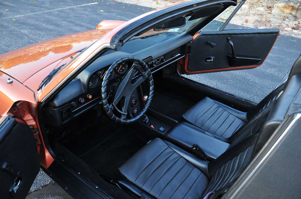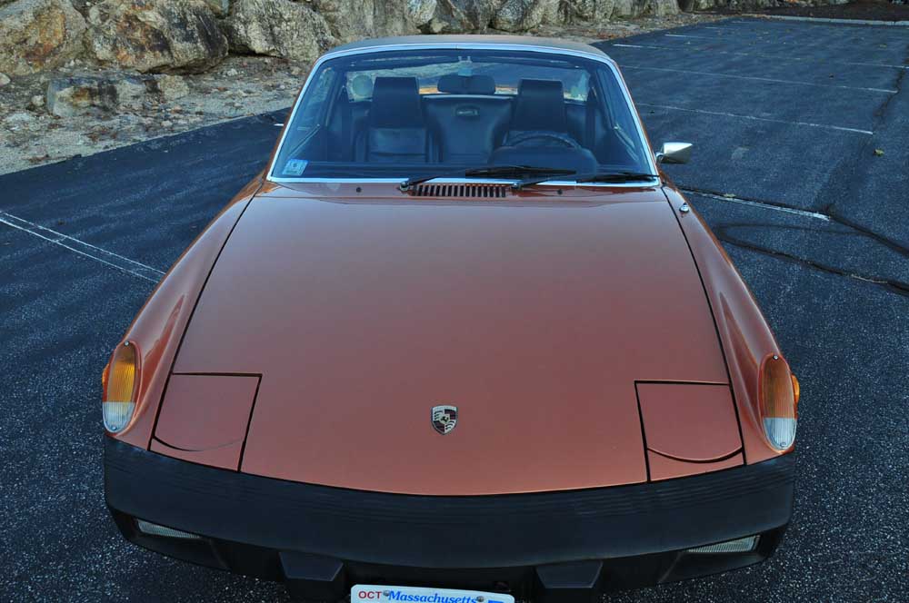 1975 Porsche 914. Refinished in Copper Metallic over black upholstery, the car is powered by a 1.8-liter flat-four that was rebuilt in 2022. It is also equipped with a five-speed manual transaxle, a removable Targa top, pop-up headlights, Fuchs 15″ wheels, a cabin heater, a push-button ignition switch, and an aftermarket cassette stereo. Additional service that has been done includes repairing the speedometer, cleaning the undercarriage with dry ice, replacing the front-trunk spare tire well, front strut cartridges, tie rods, and rear springs. A complete brake job was also recently done. This 914 is offered with service records, repair manuals, period brochures, and a clean Massachusetts title in the seller’s name.